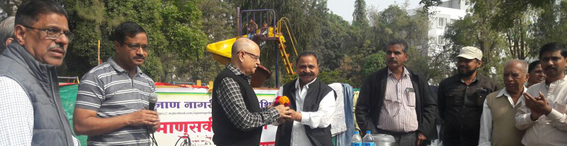 Sujan Nagarik Manch (SNM) is forum of conscientious citizens created under the guidance of Late Shri. Bhishmaraj Bam to actively participate in improving quality of life in general by their own efforts as well as by creating awareness in the society. The SNM is a non-political and non religious body, and does not discriminate against any one on the basis of cast, creed, race, religion or gender. Though SNM was initiated with special emphasis on cleanliness (swach bharat), It has been taking up different initiatives and activities for the benefit of all sections of the society as per the need of the hour.