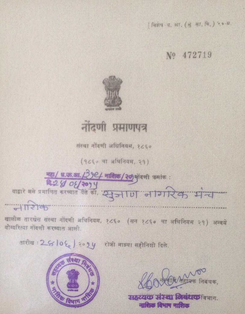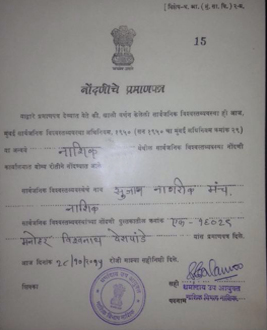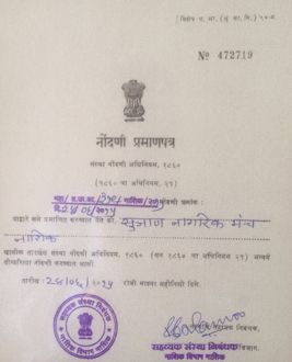 Sujan Nagarik Manch (SNM) is forum of conscientious citizens created under the guidance of Late Shri. Bhishmaraj Bam to actively participate in improving quality of life in general by their own efforts as well as by creating awareness in the society. The SNM is a non-political and non religious body, and does not discriminate against any one on the basis of cast, creed, race, religion or gender.Though SNM was initiated with special emphasis on cleanliness (swach bharat), It has been taking up different initiatives and activities for the benefit of all sections of the society as per the need of the hour.