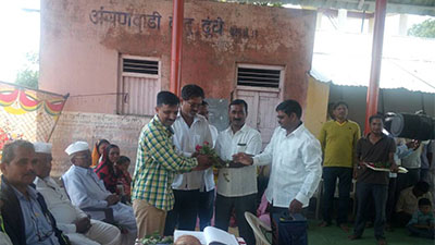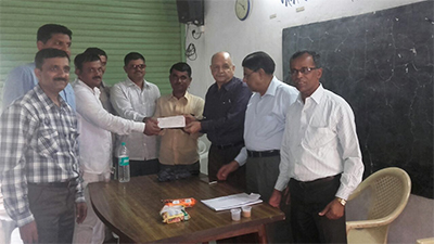 On behalf of Sujan Nagarik Manch, Shri Bam presented a Cheque for Rs 25000/- to the office bearers of " Sujaan Shetkari Bachat Gat",Dundhe gain, taluka Malegaon! This is to kickstart the activities like tree plantation and promote the farmer welfare activities in the village! This self help group has been formed due to the vigorous efforts of our member Shri Madhukar Bagul! Our best wishes!