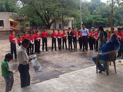 "Swacchata Dindi" by Vaishampayan school children at Mahatmanagar.